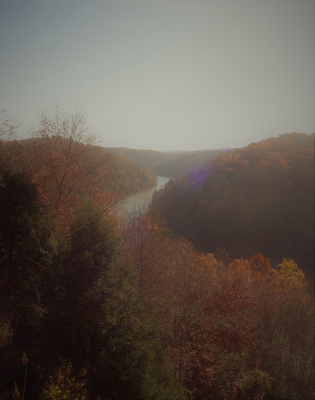 He was right. The hotel stood high on a bluff and the south facing room kept the sun all day. Below my window was nothing but the Cumberland River snaking away between picture-book hills painted with a fall forest. This was a great place. I had my A3 pad and coloured pens, I had my solitude; inspiration was bound to strike. I set to work.